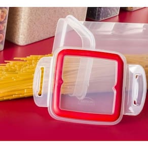 - Este pote hermético é feito de polipropileno, um material resistente e durável.