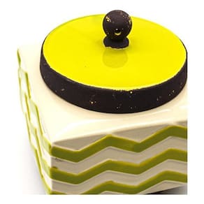 Os potes decorativos de cerâmica deixam o ambiente requintado e ainda mais bonito. Lindo pote decorativo com tampa em cerâmica na cor branco, design com listras em amarelo.