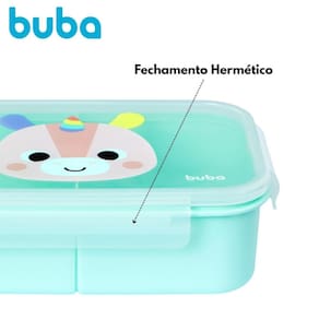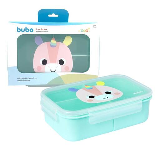 Lunchbox Buba Zoo Unicórnio Mais praticidade para os pais, mais diversão para os pequenos A Lunchbox Buba Zoo chegou para transformar a rotina dos pequenos. Com fechamento hermético antivazamento , ela mantém os alimentos sempre fresquinhos e seguros. Suas divisórias internas garantem que cada comidinha fique no seu lugar, e o melhor: é livre de BPA e super fácil de abrir e fechar.