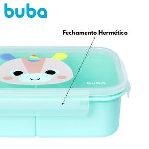 Lunchbox Buba Zoo Unicórnio Mais praticidade para os pais, mais diversão para os pequenos A Lunchbox Buba Zoo chegou para transformar a rotina dos pequenos. Com fechamento hermético antivazamento , ela mantém os alimentos sempre fresquinhos e seguros. Suas divisórias internas garantem que cada comidinha fique no seu lugar, e o melhor: é livre de BPA e super fácil de abrir e fechar.