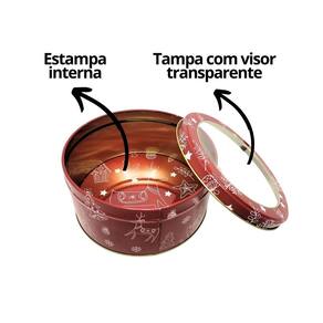 Pote Metal Redondo Decorado Natal Rena Com Visor 800ml
