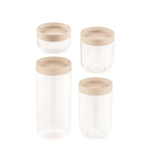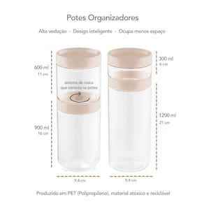 Contem: 1 Pote de 1200 ml Medidas: 21 x 9,4 cm 1 Pote de 900 ml Medidas: 16 x 9,4 cm 1 Pote de 600 ml Medidas: 11 x 9,4 cm 1 Pote de 300 ml Medidas: 6 x 9,4 cm Materia: PET (PP)