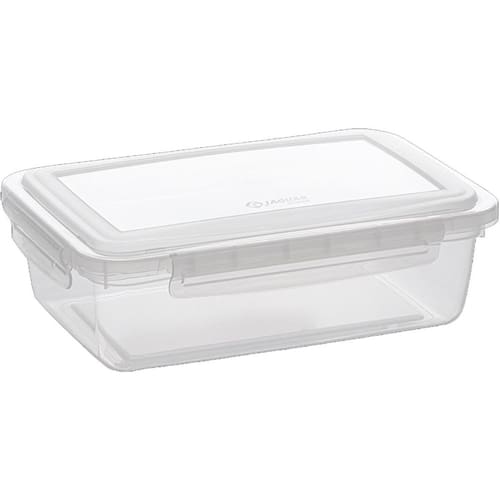 Pote Para Alimentos Retangular Com Travas 1,1 Litro Plástico POTE com TRAVA 1,1L Pote retangular com travas nos quatro lados. Com sua versatilidade os potes da linha Easy Lock apresentam ótima resistência e um design elegante. Fabricado com material atóxico e totalmente isentos de BPA bisfenol A , garantem total segurança. Sua praticidade vai além, pois podem ser utilizados no micro-ondas, lava-louças, congelador ou freezer, além disso é isento de BPA para sua saúde. Tamanho 21,5x15x6,5 CM Cod. 3307 Jaguar Marca: Não Informado Ean: 7896952533078