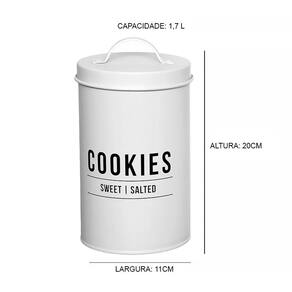 1 Pote para Biscoito Manhattan em Aço Galvanizado Branco 1,7 Litros POTE179BR - Hauskraft