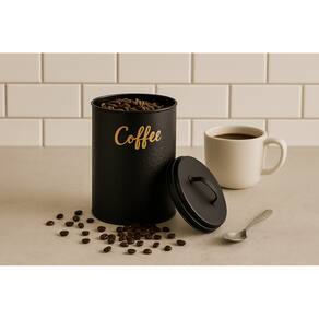 Pote Para Café Com Tampa De Aço Inoxidável Estilo Retrô Preto - 11x15cm -