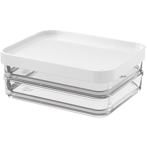 O pote para frios com base transparente, permite a fácil visualização dos alimentos. Em um formato compacto e separado com dois recipientes empilháveis, o pote é ideal para conservar variados tipos de alimentos, desde uma salada de fruta para o seu lanche da tarde, até frios na geladeira. O pote para mantimentos possui tampa com vedação para a conservação dos alimento. O pote para cozinha com formato retangular, possibilita o empilhamento de mais unidades, proporcionando assim, uma melhor organização nos seus armários e na sua cozinha. O pote com tampa em polietileno e os recipientes em poliestireno, são recicláveis, além de poderem entrar em contato com alimento sem preocupação, por serem BPA free, perfeito para a sua rotina e organização da geladeira e armários.