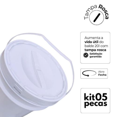 Balde de 20 litros com tampa rosca e alça plástica nastripack 5 peças Comercializamos o balde vazio e sem impressão. O título do anúncio serve apenas como sugestão de usabilidade. Se você busca um balde resistente, seguro e de alta qualidade para armazenar alimentos ou produtos químicos, o balde de 20 litros com tampa rosca da nastripack é a escolha perfeita fabricado com polipropileno copolímero atóxico e 100% bpa free, ele garante proteção total ao conteúdo armazenado, além de um fechamento seguro e prático. Nesta compra você vai receber: - 05 x baldes 20 litros branco com alça plástica - 05 x tampas rosca branca Especificações técnicas do balde 20 litros com tampa rosca Código do produto: bd20lr Material: polipropileno copolímero atóxico e bpa free Fechamento: tampa rosca tr16 Capacidade real: 20,85 litros Dimensões do balde 20 litros com tampa rosca nastripack Altura com tampa: 381mm Diâmetro superior com tampa: 295mm Diâmetro inferior: 251mm Peso total: 720g balde + tampa + alça plástica Alça inclusa: plástica Temperatura de armazenamento: -5c a +75c A tampa rosca foi projetada para proporcionar vedação hermética, evitando vazamentos e protegendo contra agentes externos. Esse sistema de fechamento é ideal para armazenagem e transporte seguro, garantindo a integridade do produto. O design funcional facilita o manuseio e empilhamento. Com a tampa rosca, abrir e fechar o balde se torna um processo simples e eficiente, sem a necessidade de ferramentas adicionais. Isso faz com que o produto seja altamente indicado para segmentos que exigem praticidade e segurança, como indústrias alimentícias, químicas e farmacêuticas. A nastripack é especialista em soluções de embalagem industrial, e este balde de 20 litros com tampa rosca é um dos destaques da nossa linha de produtos. Além de seguro e resistente, ele possui um excelente custo-benefício, sendo uma opção confiável para armazenar líquidos, pós e granulados com total proteção. Ao escolher a nastripack, você garante um balde de 20 litros com tampa rosca que atende aos mais altos padrões de qualidade e segurança. Este modelo é amplamente utilizado por empresas que buscam durabilidade e vedação eficiente em seus processos logísticos e de armazenamento. Por que comprar o balde 20 litros com tampa rosca da nastripack - material seguro e resistente: fabricado em polipropileno de alta qualidade, livre de bpa, garantindo total segurança no armazenamento de alimentos e produtos químicos. - fechamento hermético: a tampa rosca tr16 garante vedação perfeita, evitando vazamentos e protegendo contra umidade e contaminação externa. - capacidade real de 20,85 litros: ideal para armazenar líquidos, pós, grãos e outros produtos de forma segura e eficiente. - versatilidade no uso: atende indústrias alimentícias, químicas, farmacêuticas, cosméticas e agrícolas. - resistência a altas e baixas temperaturas: pode ser utilizado em ambientes de -5c a +75c sem comprometer sua estrutura. - empilhamento seguro: possui design que permite empilhamento otimizado, reduzindo espaço no armazenamento e transporte. - alta durabilidade: desenvolvido para suportar impactos e desgastes do uso contínuo sem deformações. - fácil higienização: superfície lisa que facilita a limpeza e impede o acúmulo de resíduos. Aplicações do balde de 20 litros com tampa rosca da nastripack: - indústria alimentícia: armazene óleos, grãos, farináceos, líquidos e outros ingredientes com total segurança alimentar. - produtos químicos: ideal para armazenar tintas, solventes, fertilizantes, agroquímicos e produtos industriais e farmacêuticos. Compre agora com de qualidade Compra segura com qualidade garantida Não perca tempo e adquira agora mesmo o balde de 20 litros com tampa rosca para garantir armazenamento seguro e eficiente para o seu negócio