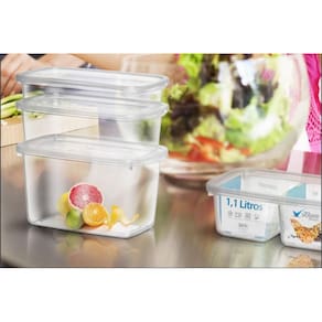 Comprando os potes plásticos da linha Volare você armazena seus mantimentos e organiza sua dispensa com praticidade e estilo São muitas possibilidades em um único kit, oferecendo o tamanho certo de pote para cada necessidade da sua casa. Eles podem ser no freezer, micro-ondas e lava-louças, pois são resistentes à variação de temperatura. Além disso, os potes Rischioto te dão tranquilidade, pois são livres de BPA, substância cancerígena presente em muitos produtos plásticos no mercado. O fechamento dos potes da linha Volare são herméticos, preservando a qualidade, o sabor e frescor dos alimentos. DIFERENCIAIS Vários tamanhos que se encaixam no seu dia-a-dia. Mantém os alimentos frescos por muito mais tempo, pois o fechamento é hermético. Suporta variação de temperatura, podendo ser no microondas, freezer e lava louças. BPA free ou seja livre de bisfenol A, não tóxica. Sobre nós: A Sua Casa Top é uma empresa com 25 anos no mercado, sendo referencia na produção de móveis. Recentemente atualizando-se ao mercado brasileiro, já se encontra entre uma das maiores empresas de móveis tubulares do país, inicia agora a expansão de sua linha de produtos, distribuindo diversos itens para uso domésticos, profissionais e semi-profissionais. Dentro dessa linha, temos o orgulho de anunciar a parceria com uma das maiores empresas de plásticos do Brasil: a Rischioto A Rischioto é uma empresa especializada na produção e distribuição de soluções plásticas para residências e comércios. Desde 1998 com objetivo de atender a necessidade do mercado através de produtos de qualidade. O objetivo dessa parceria é oferecer: Produtos de qualidade com o melhor preço do mercado, bem como atendimento de excelência e entrega rápida e segura. SOMOS REVENDEDORES AUTORIZADOS. Ficha técnica: Comprimento: 21,5 cm Largura: 13 cm Altura: 11,5 cm Capacidade: 2 litros Material: Plástico. Cor da tampa e pote: transparente Indicações de uso: Alimentos e mantimentos de todos os tipos. Pode ser no freezer e/ou no microondas. Sua Casa Top Marca: Não Informado Ean: 7898121659145