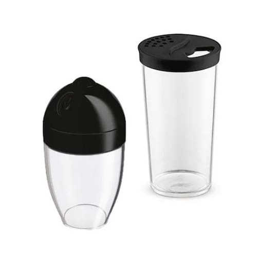 Kit de pote farinheiro e porta condimentos. Os potes com tampa são ideais para guardar grãos e temperos. Produzido em poliestireno, o material é altamente resistente, possuindo design robusto e moderno que vai dar um toque especial à sua mesa. Alta transparência, com material 100% reciclável e atóxico. Livre de Bisfenol A (BPA Free)