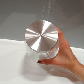 Altura: 16,5 cm Largura: 12 cm Profundidade: 12 cm Peso: 0,67 Kg Diâmetro da Base: 12 cm Diâmetro do Topo: 8 cm Material: Vidro Cor: Transparente