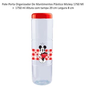 01 um Pote Porta Organizador De Mantimento Plástico Mickey 1750 MlA criançada vai adorar Ótimo para enfeitar sua mesa com quitutes e mantimentos na cozinha / copa nos lindos potes Mickey, de fácil manuseio e fácil limpar.Medida do pote Organizador Mickey 1750 ml Altura com tampa 29 cm e Largura 8 cmORGANIZADOR PARIS MICKEY 1750 Ml REF 460405838 EAN 7896103472089