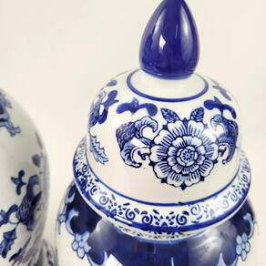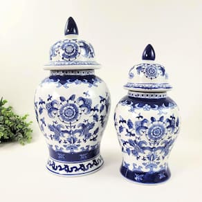 Enriqueça seus ambientes com o exclusivo Kit de Porcelana Azul e Branca da Inigual Decor. Composto por dois potes decorativos encantadores, este conjunto é perfeito para elevar o estilo de sua casa, escritório ou consultório.