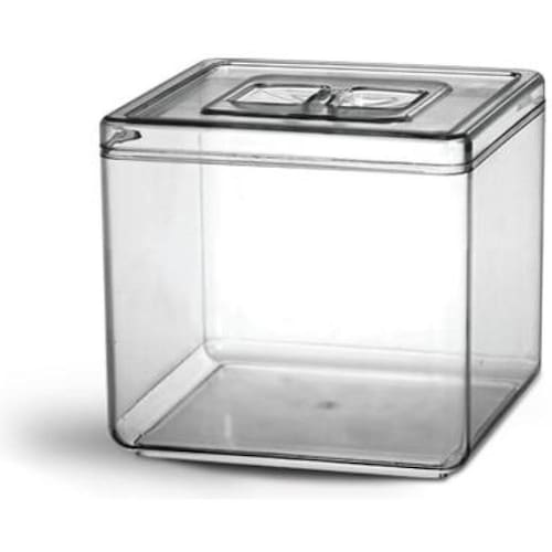 Pote Quadrado Transparente Acrílico / Cristal Capacidade 5 Litros Produzido em PS poliestireno Medidas: 18 x 18 x 19 cm Peso : 0,550 gr Embalagem: 26 x 26 x 26 cm Peso: 0,800 gr Marca: Não Informado