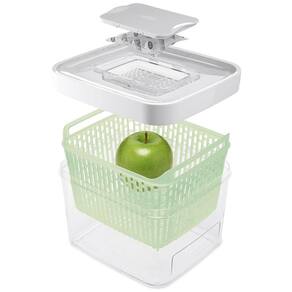 Pote Quadrado Greensaver 4L Oxo Com Filtro De Carvão é ideal para prolongar a vida útil dos alimentos. Com capacidade para 4 litros, é feito em policarbonato de alta qualidade. Possui cesto que impede contato dos alimentos com a água, mantendo-os frescos por mais tempo. A tampa conta com filtro de carvão ativado, que retarda o envelhecimento dos alimentos. Filtro feito de casca de coco, seguro e 100% natural. Marca OXO, conhecida por seu design inovador. Filtros de reposição vendidos separadamente.