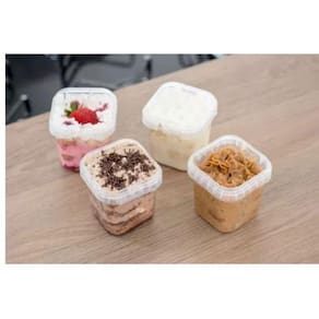 Principais Características: - Pote quadrado transparente com tampa - Capacidade de 220ml - Ideal para bolos, tortas, doces em pasta e mais - Pode ser utilizado no freezer e no micro-ondas - Material resistente e durável - Dimensões aproximadas: largura de 6cm, altura de 7,3cm e comprimento de 6cm - Kit com 100 unidades - Produzido em poliestireno e pigmentos Ean: 7798632927729