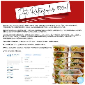 Adquira agora mesmo o Pote Retangular Marmita Fitness Congelada 1500ml Bpa Free e facilite sua rotina alimentar com praticidade e versatilidade.