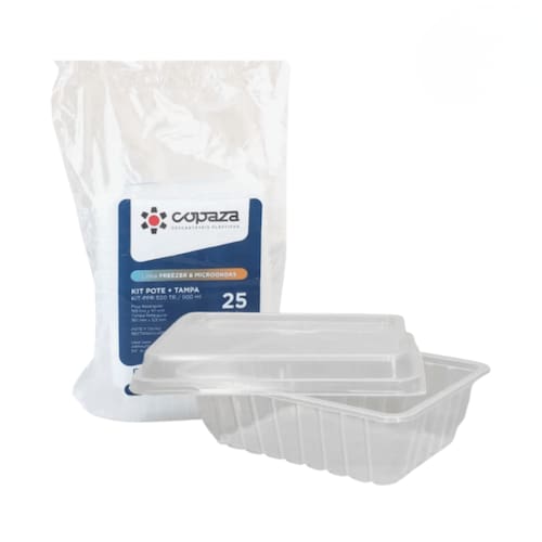 1 Pacote com 25 unidades de Pote Retangular Copaza 500ml com Sobretampa