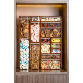 Seu sistema de encaixe não apenas otimiza espaço, mas também proporciona versatilidade, com inúmeras opções de empilhamento, seja de potes maiores sobre os menores ou retangulares acima dos quadrados e vice-versa. A vedação hermética impede vazamentos e a entrada de ar, mantendo frescor e qualidade.