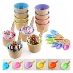 Pote de Sorvete Casquinha Tigela Com Colher Sobremesa