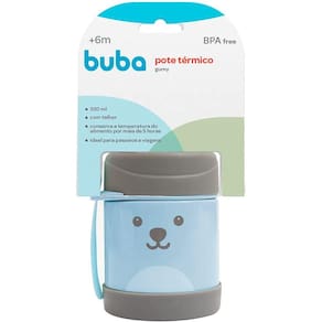 O Pote térmico da Buba acompanha talher e é ideal para refeições fora de casa, pois ajuda a conservar a temperatura dos alimentos (quente ou fria) por mais de 5 horas. Pode ser utilizado para armazenar papinhas, frutas e legumes. Produzido em aço inoxidável com parede dupla, é resistente e higiênico, ótimo para levar em passeios e viagens. Conheça toda a linha Gumy, os bebês vão se apaixonar!