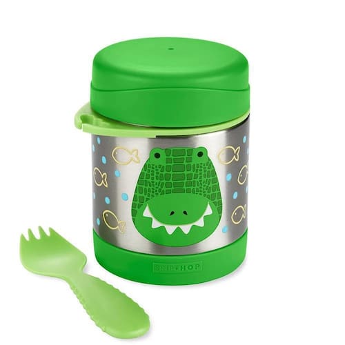 O Pote Térmico com Talher Zoo Crocodilo da Skip Hop mantém os alimentos quentes por 7 horas ou frios por 5 horas. Com capacidade de 325 ml, é ideal para levar alimentos frescos para os nossos pequenos durante os passeios ou para o lanche da escola. Feito de aço inoxidável, vem com o suporte de talher embutido.ESPECIFICAÇÕES: Idade indicativa: 3 anos;Suporte de talher embutido; Inclui talher; Capacidade: 325 ml; Livre de BPA, Ftalatos e PVC.COMPOSIÇÃO: Aço Inoxidável, PP, PS, silicone, PP e PE.MEDIDAS:11,70 x 9,39 x 18,99 cm.LIMPEZA E MANUTENÇÃO:Lavar à mão em água morna com sabão neutro. Não seguro para lava louças; Não seguro para micro ondas.