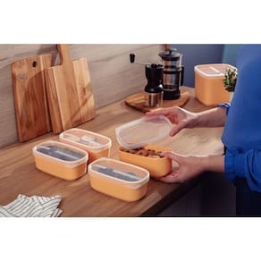 - Pode ser levado à máquina de lavar, micro-ondas, refrigerador e freezer, facitando o dia a dia;