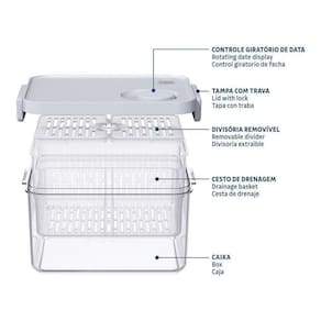 Para quem precisa armazenar grandes volumes com praticidade e cuidado, o pote organizador de geladeira Tramontina Organizzare com controle de umidade 6,2 L é a escolha certa. Com espaço de sobra e tampa com ventilação ajustável, ele ajuda a preservar frutas, legumes, carnes e laticínios por mais tempo, mantendo sabor, frescor e textura. O cesto de drenagem evita o direto com a umidade, enquanto o divisor removível permite organizar os alimentos de forma versátil. O controle de data giratório facilita o acompanhamento do tempo de conservação. Com design inteligente e eficiente, esse pote é um aliado indispensável para quem busca otimizar o espaço da geladeira e simplificar a rotina na cozinha.