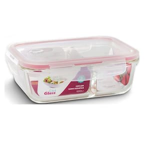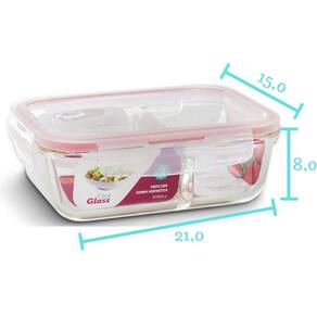1 Pote de Vidro com Tampa Hermética Retangular com Divisória 1010ml