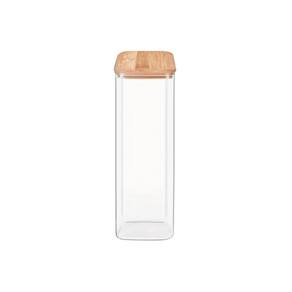 - 01 Pote Quadrado De Vidro Borossilicato 2000ml Com Tampa De Bambu.