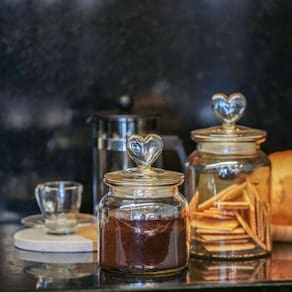 Não perca mais tempo, adquira agora mesmo o nosso Pote em vidro âmbar modelo Afeto com tampa hermética decor coração e desfrute de alimentos frescos e bem armazenados em sua cozinha!