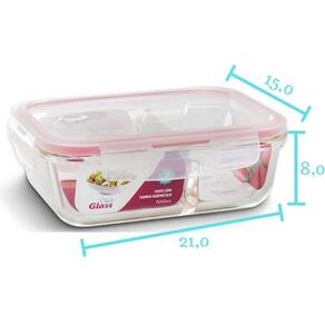 1 Pote de Vidro com Tampa Hermética Retangular com Divisória 1010ml