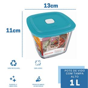 Pote De Vidro Quadrado Com Tampa Marinex 1L 20 unidades
