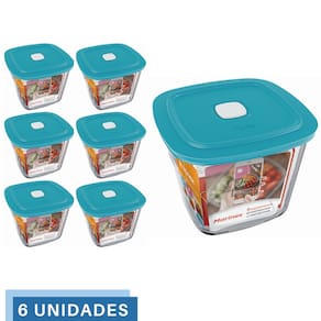 Pote De Vidro Quadrado Com Tampa Marinex 1L 6 unidades