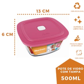 1 unidade Pote De Vidro Quadrado Com Tampa 500ml Marinex