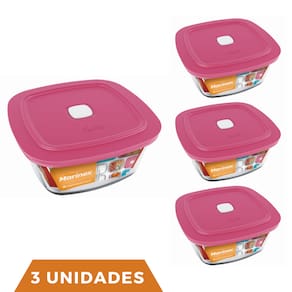 3 unidades Pote De Vidro Quadrado Com Tampa 500ml Marinex