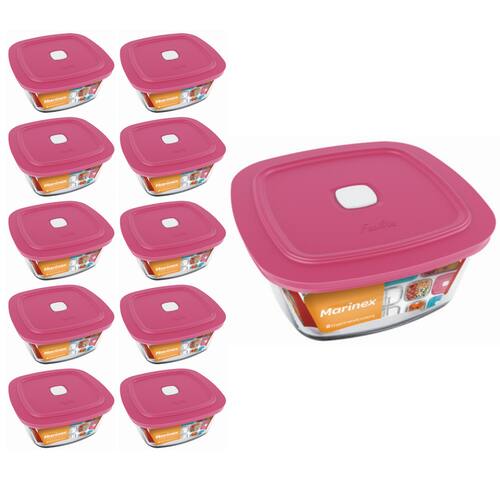 Pote Vidro Quadrado Facilita Marmita 500ML Marinex 10Un