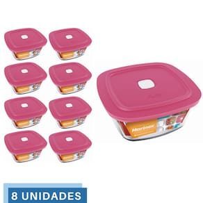 Pote De Vidro Quadrado Com Tampa Marinex 500ml 8 unidades