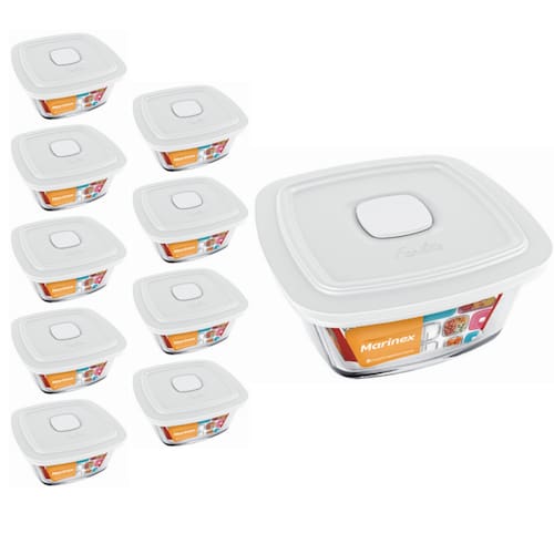 9 Potes De Vidro Marinex Facilita Quadrado Com Tampa 2 Litros