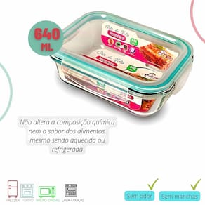 Pote Vidro Retangular 640ml Hermético Travas Quality House Mantenha sua cozinha organizada e seus alimentos sempre frescos com o Pote Vidro Retangular 640ml da Quality House. Feito em vidro borosilicato extra resistente, este pote é ideal para quem busca praticidade, segurança e durabilidade no armazenamento de alimentos. Com uma tampa hermética equipada com 4 travas e anel de vedação em silicone, este pote assegura a conservação dos alimentos, evitando vazamentos e mantendo o frescor por mais tempo. Diferenciais do Produto: - Vidro Borosilicato Extra Resistente: Material que suporta mudanças bruscas de temperatura e choques, garantindo a durabilidade e longevidade do produto. - Tampa Hermética com Travas: Com um sistema de vedação em silicone, o pote evita vazamentos e preserva o sabor e frescor dos alimentos. - Versatilidade e Segurança: Pode ser Utilizado em lava-louças e micro-ondas, proporcionando praticidade no aquecimento e na limpeza. - Design Compacto e Moderno: Empilhável e elegante, ideal para otimizar espaço na sua cozinha. Ficha Técnica: - Produto: Pote Vidro Retangular 640ml Tampa Hermética Travas Quality House - Material: Vidro Borosilicato, Silicone, Plástico - Capacidade: 640ml - Formato: Retangular - Dimensões: 7cm x 13cm x 18cm - Cor: Transparente com tampa em plástico resistente - Segurança: Sistema hermético com 4 travas e anel de silicone removível 1. Posso usar o pote no forno Não, este pote é adequado para micro-ondas, freezer e lava-louças, mas não é indicado para uso em forno convencional. 2. A tampa realmente evita vazamentos Sim, a tampa possui um anel de vedação em silicone e 4 travas que garantem uma vedação perfeita, evitando qualquer tipo de vazamento. 3. O vidro borosilicato é seguro para armazenar alimentos Sim, o vidro borosilicato é um material seguro, livre de BPA e ideal para armazenar alimentos, mantendo-os livres de substâncias tóxicas. 4. O pote pode ser colocado diretamente no micro-ondas após ser retirado do freezer Sim, o vidro borosilicato é resistente a choques térmicos, mas recomenda-se seguir as instruções de uso para garantir a segurança e durabilidade do produto. 5. Como devo limpar o pote O pote pode ser lavado à mão ou na lava-louças. A tampa deve ser lavada com cuidado, evitando o uso de materiais abrasivos. 6. O produto tem Sim, nossos produtos possuem . O período de varia de acordo com o fabricante e o tipo de produto. Consulte a descrição do produto para mais informações. 7. O produto é novo ou Utilizado 8. Posso rastrear meu pedido Sim, após a confirmação da compra,a própria plataforma fornecerá todos os dados de rastreamento para acompanhar a entrega do seu pedido. 9. Posso retirar o produto em algum lugar Atualmente, não oferecemos a opção de retirada em local físico. Todos os nossos produtos são entregues diretamente na sua casa. Garanta o seu Pote Vidro Retangular 640ml da Quality House e transforme a organização e o armazenamento na sua cozinha com qualidade e elegância.