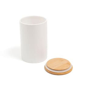 Esse é o pote de dolomita grande 1,5L da OIKOS. Versátil: ele vai bem em todos os cantos da casa: na cozinha, no banheiro, na sala, no quarto, dentro dos armários, nas prateleiras e onde mais você quiser. Bem prático: ótimo para organizar a cozinha, armazenando mantimentos, ervas e temperos. ou então para guardar objetos diversos como acessórios, fios, algodão, itens de escritório e muito mais! Design decorativo: funcional e bonito, esse pote transita muito bem entre os diferentes cômodos da casa, espalhando seu charme por onde quer que vá. Tampa de bambu: o bambu não gosta de umidade ou contato com água por muito tempo, é bom guardar sempre em local seco e arejado. Detalhe do material: a dolomita é um material resistente e durável. com acabamento lustroso, ele combina com vários estilos de decoração, trazendo uma bossa a mais para o ambiente.Dimensões do produto:Altura: 19,5CmLargura: 12,5Cm