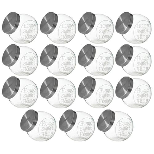 Potes Baleiros De Vidro Com Tampa Home Sweet Home 700Ml 15 Peças - Casambiente Povi158/15 Baleira pote de Vidro Transparente com Tampa Inox - Casambiente