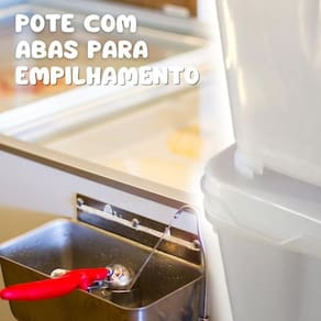 A tampa com fechamento hermetico possuem bordas maiores para realizar o empilhamento de outros potes com segurança
