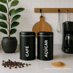 Transforme a organização da sua cozinha com estilo e sofisticação O kit de porta-mantimentos em metal, com design moderno e acabamento fosco, é perfeito para armazenar com praticidade e charme seus itens do dia a dia. Cada pote vem identificado com escrita clean e elegante, garantindo rapidez na hora de encontrar o que precisa e trazendo harmonia para a decoração da sua bancada ou prateleira. Além da estética minimalista que combina com cozinhas modernas, os potes possuem excelente vedação e durabilidade, mantendo café, açúcar e outros ingredientes protegidos e bem conservados. Um toque funcional que eleva o visual do seu ambiente. Especificações Técnicas Material: Metal resistente Medidas: 10 cm largura x 10 cm profundidade x 15,5 cm altura Formato: Cilíndrico Vedação: Tampa de encaixe firme Capacidade aproximada: Ideal para armazenar mantimentos como café e açúcar Utilização recomendada: Organização e conservação de alimentos secos Estilo: Moderno e minimalista Limpeza: Fácil de higienizar com pano úmido e sabão neutro Imagens ilustrativas. Marca: Não Informado