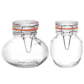 O jogo de potes para mantimentos herméticos da Casambiente é composto por 6 potes com tampa hermética, feitos de vidro resistente e com vedação em silicone laranja.