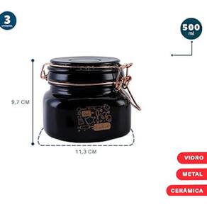 Contém 3 Potes de Vidro para mantimentos Dolce Home. São os detalhes que farão toda a diferença em sua casa, combina com qualquer ambiente e vai trazer um charme especial para a sua mesa. Com uma Estampa totalmente exclusiva. Útil para diversos tipos de mantimentos, por exemplo: açúcar, café, sal, farinhas, especiarias e muitos outros Especificações: - Contém: 3 peças - Material: Vidro, Cerâmica e Metal - Medidas: 11,3 x 11,5 x 9,7 cm - Cor: Preto - Capacidade: 500 ml.*Imagens meramente Ilustrativas