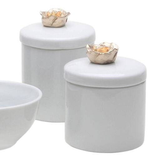Para deixar seu bebê sempre cheirosinho este kit é perfeito Fabricados com materiais de altíssima qualidade e resistência, esse kit foi desenvolvido para facilitar o dia a dia das mamães, que precisam da praticidade de ter tudo devidamente armazenado e pronto para uso Dados TécnicosKit higiene com porcelanas brancas decoradas com florzinha dourada. Itens Inclusos no Kit01 Pote grande em porcelana branca com tampa01 Pote pequeno em porcelana branca com tampa 01 Molhadeira em porcelana branca01 Porta ÁlcoolGel/ Sabonete Líquido em porcelana branca MedidasPote Grande: 9 cm de diâmetro e 10 cm de alturaPote Pequeno: 9 cm de diâmetro e 8,5 cm de alturaMolhadeira: 11,5 cm de diâmetro e 5,5 cm de alturaPorta ÁlcoolGel/Sabonete Liquido: 6,5 cm de diâmetro e 15 cm de altura