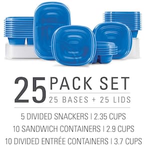 Os recipientes de zenamento de alimentos divididos da Rubbermaid são projetados para uma variedade de alimentos, incluindo entradas, sanduíches, acompanhamentos e lanches Recipientes de lanches divididos e recipientes de entrada ajudam a manter os alimentos separados, por isso são recipientes de preparação de refeições perfeitos Esses recipientes Rubbermaid apresentam um selo QuikClik a tampa se encaixa de forma audível na base, para que você saiba que está bem selada As bases coloridas facilitam a localização dos recipientes em uma geladeira lotada tampas claras permitem que você veja o que está dentro A tampa permite que os recipientes sejam facilmente empilhados na geladeira e no armário Marca: Não Informado