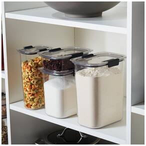 Os recipientes modulares de zenamento de alimentos Rubbermaid podem conter massas, ingredientes de panificação ou outros alimentos básicos economizar espaço e manter a despensa organizada Ótimo para alimentos para animais de estimação fácil de limpar e retirar alimentos, e tampas apertadas protegem contra a umidade As tampas se encaixam bem para ajudar a manter os alimentos frescos Pilha de contêineres para zenamento compacto Paredes de contêiner espessas e duráveis para uso diário para freezer, lava louças de rack superior e livre de BPA Conjunto de 4 recipientes herméticos para zenamento de alimentos na despensa, incluindo um recipiente de 16 xícaras, um recipiente de 2,8 mL, um recipiente de 1,5 mL e um recipiente de 768 mL mais tampas, para um total de 8 peças Marca: Não Informado