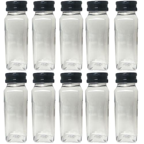 Potes para tempero com tampa dosadora dupla kit 10 potes O kit contém 10 potes vazios de 200ml para temperos especiarias em geral, eles são de plástico de alta resistência contendo também tampa dosadora giratória com 2 níveis .