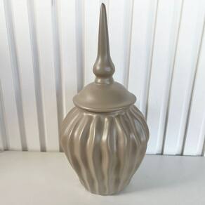 Decoração sala estante rack ornamento potiche de cerâmica onda ondulação cáqui com tampa.